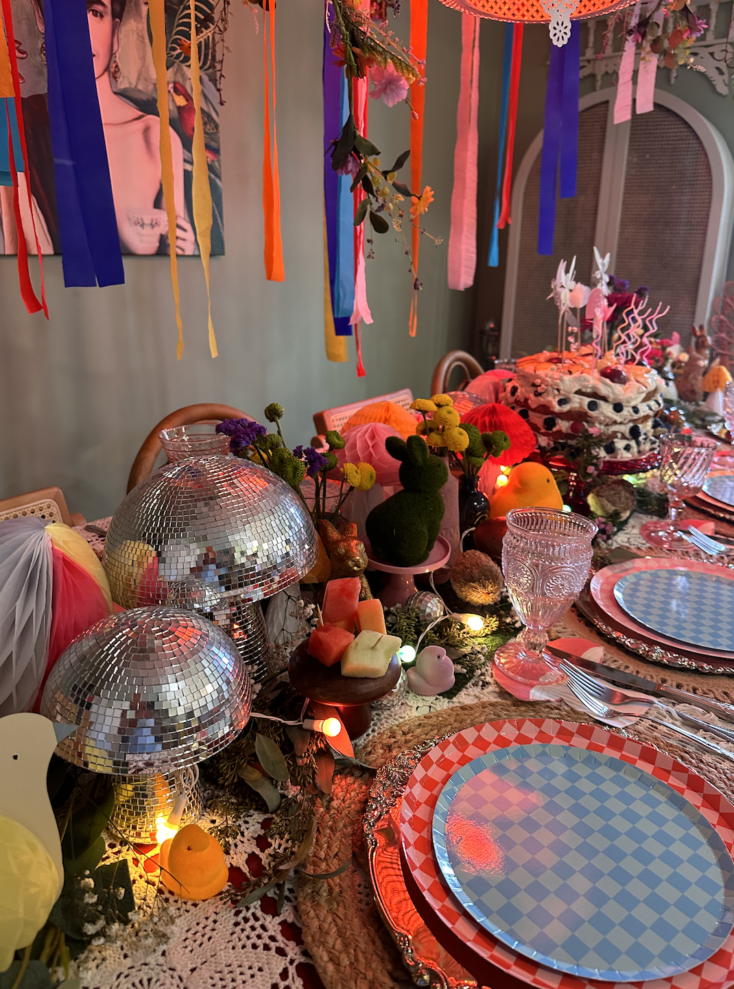 A dinner party for a friends birthday on Easter weekend.